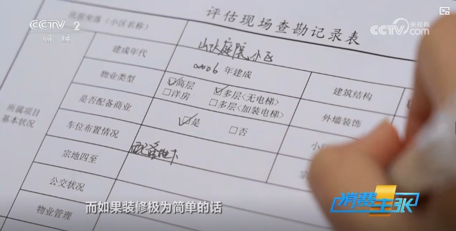 李符弘 房地产土地资产评估公司评估师:我们评估取的是三家(评估)公司的平均价格,所以说这个在一定程度上有可能会高于正常的一个市场卖价。假设房子装修了60万元,但是我们在本次评估的时候,我们也不可能实际去考虑房子实际投入了这么多的装修费,也是设定房子是一个简单装修进行去评估,但我们的评估价格就会低于房子的一个实际(市场)销售价格。而如果装修极为简单的话,我们的评估价格可能就会高于房子的一个实际(市场)销售价格。