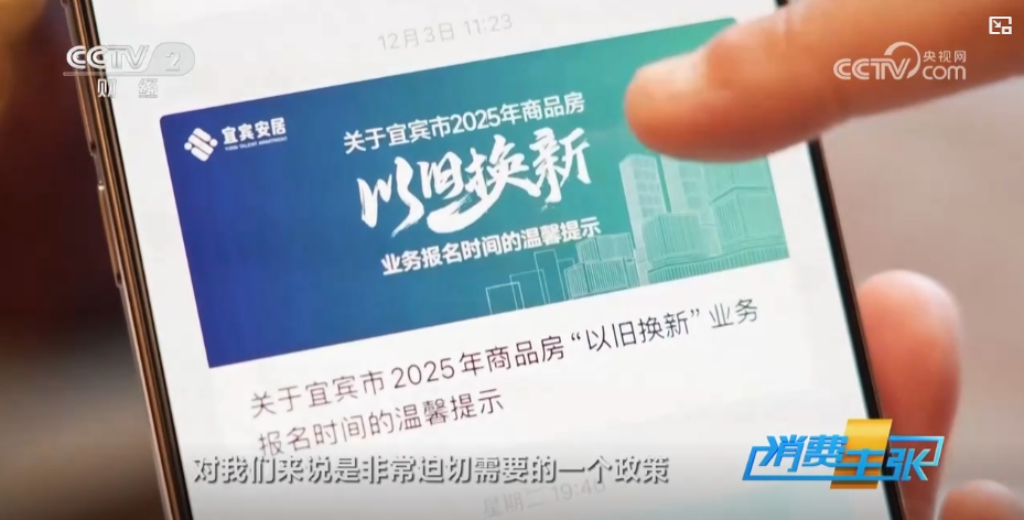 1月5日,CCTV-2财经《消费主张》栏目播出《以旧换新升级,能否助力楼市回暖破局?》,其中探访了四川省宜宾市试点住房“以旧换新”模式,有效激发市场活力。
