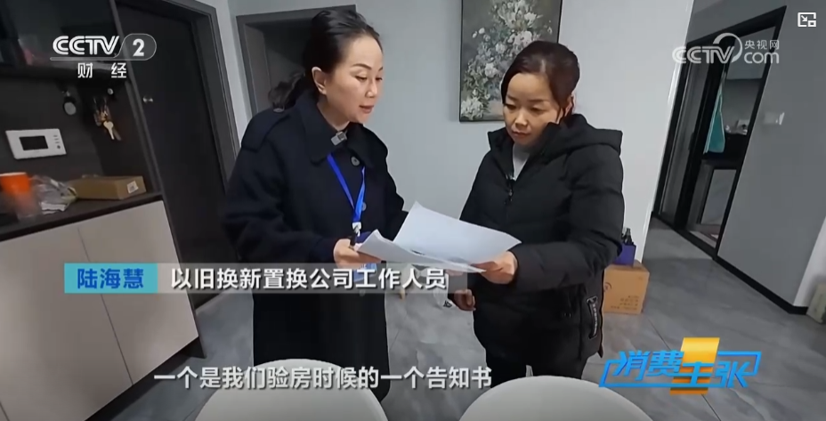 陆海慧 以旧换新置换公司工作人员:今天我们过来验房,给到您两个告知书,一个是我们验房的时候的一个告知书,一个是关于您参加此次以旧换新的相关政策的一个告知书。那我今天验房的话,会到您的各个房间去拍照,有没有问题?