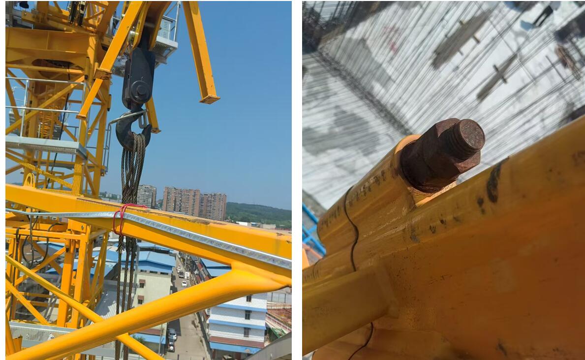 11.塔机标节部分螺栓锈蚀未润滑,力矩限位无80%报警预警,无减速。