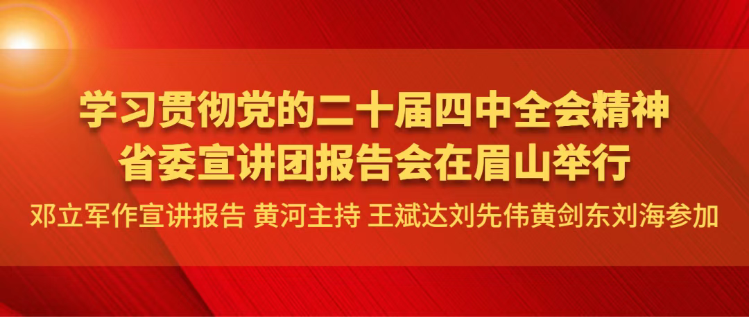 按照省委统一部署,11月20日,学习贯彻党的二十届四中全会精神省委宣讲团报告会在眉山举行。省委第七宣讲分团负责人,住房和城乡建设厅党组书记、厅长邓立军作宣讲报告。市委书记黄河主持报告会。市委副书记、市长王斌达,市人大常委会主任刘先伟,市政协主席黄剑东,市委副书记刘海参加。
