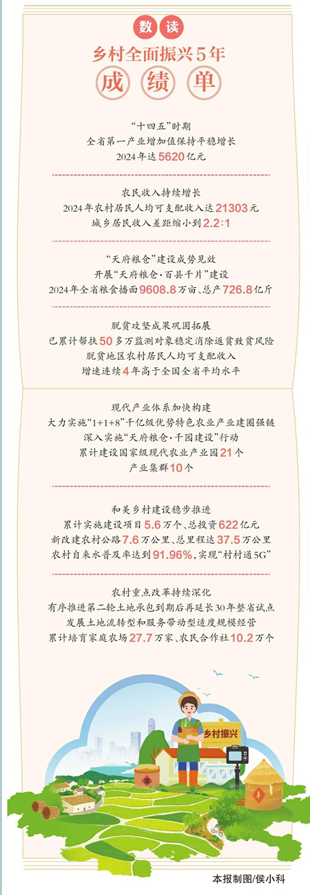 产业是乡村振兴的“引擎”,环境是乡村振兴的“底色”。这5年,四川乡村全面振兴有哪些亮点?交出了怎样的答卷?发布会上,一组组数据、一个个案例,勾勒出四川乡村5年来的蝶变成长。