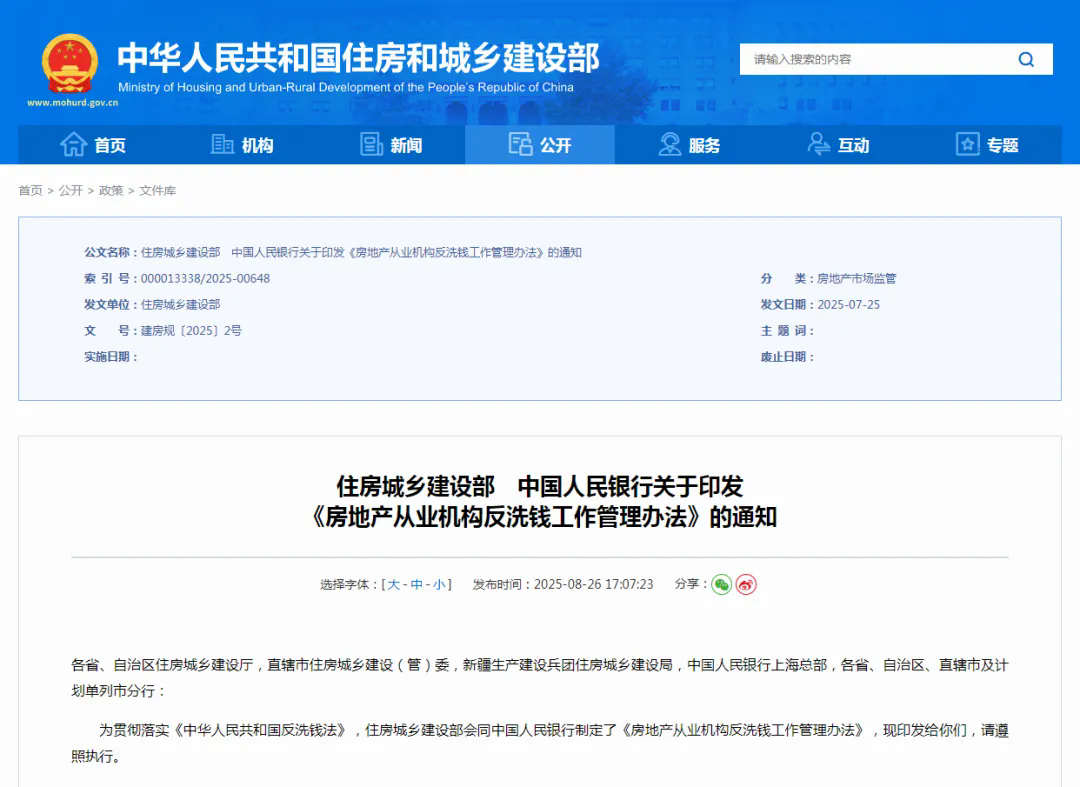 为贯彻落实《中华人民共和国反洗钱法》,住房城乡建设部会同中国人民银行制定了《房地产从业机构反洗钱工作管理办法》。