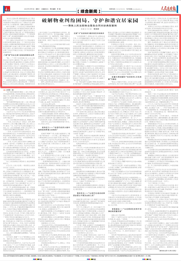 和谐宜居的家园,离不开业主与物业服务人的良性互动,更需要司法力量的保驾护航。当物业服务人坚守诚信履约的底线,业主秉持理性维权的原则,各方在法治框架内依法行事、互谅互让,就能破解物业纠纷困局,让小区真正成为充满温度的幸福港湾,为基层治理注入持久动力。