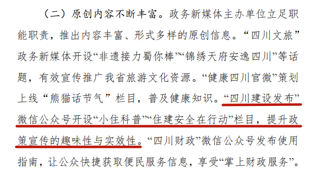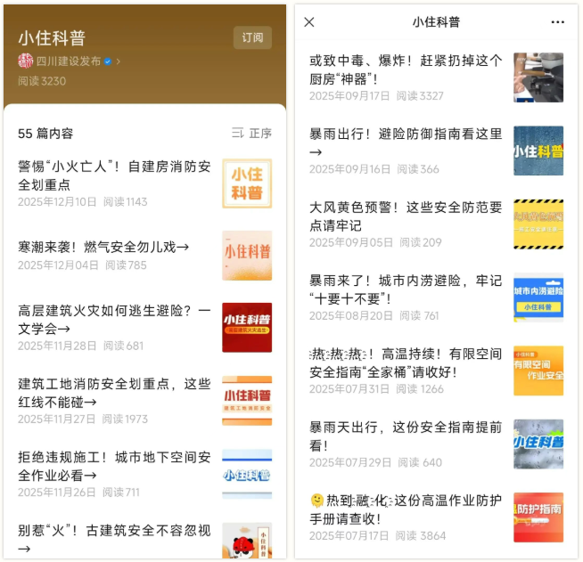 “四川建设发布”微信公众号开设“小住科普”“住建安全在行动”栏目提升政策宣传的趣味性与实效性。