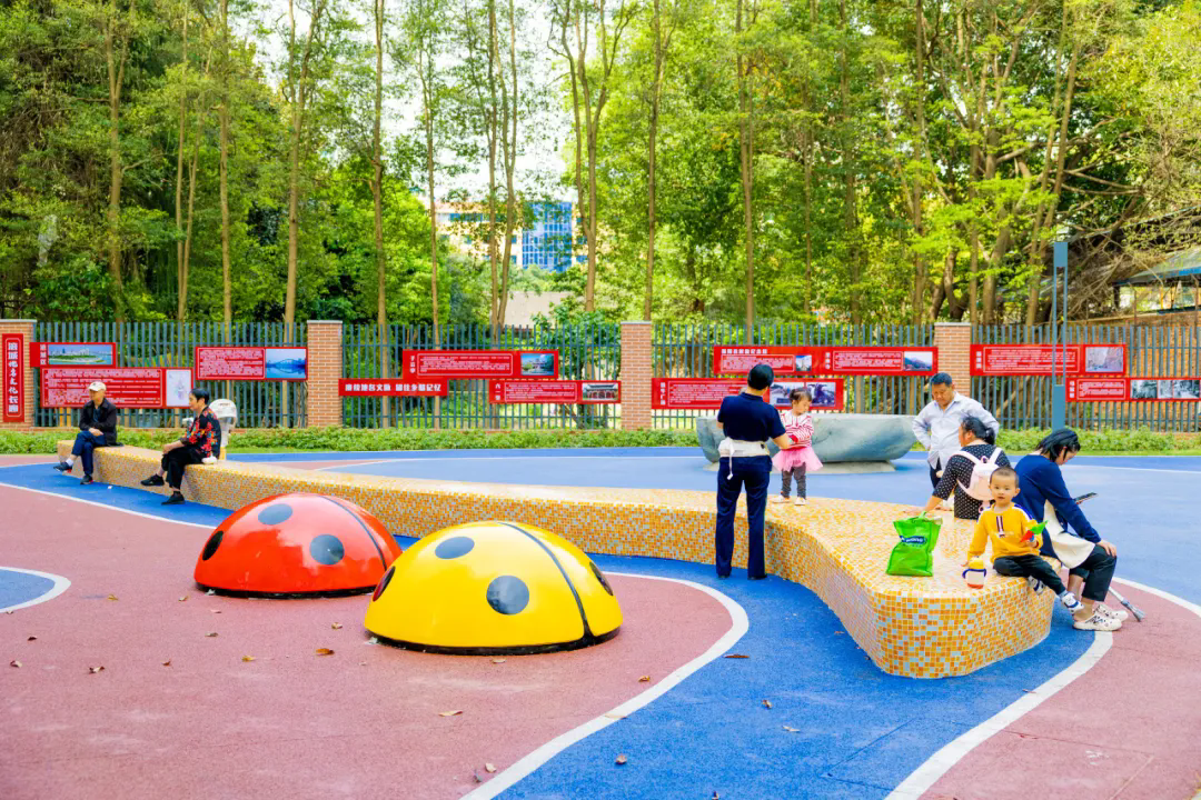 在翠亭廊口袋公园,五彩斑斓、健身器材一应俱全、游乐设施眼前一亮,不少人在这里打羽毛球、轮滑、攀岩、健身、遛娃,更是孩子们的欢乐天地。