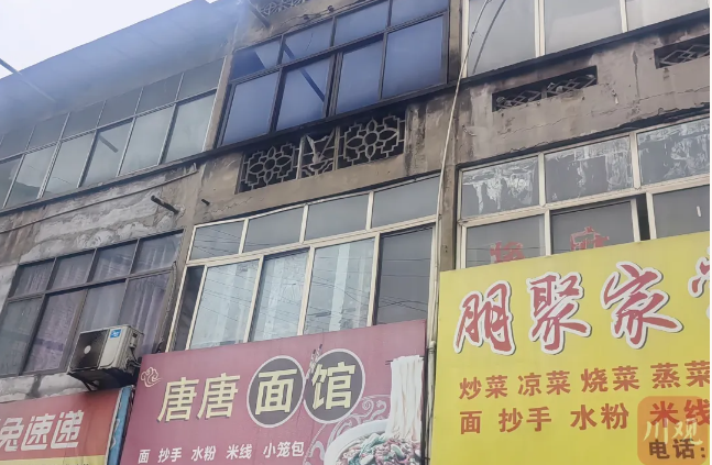 连兴路是该镇的主干道之一,车辆、行人活动较为密集。连兴路上,一排老旧房屋格外“显眼”。临近午餐时间,一楼面馆、饭馆内的食客们正在享受着美味。然而,把视线向上移,二、三楼变形的窗户、锈蚀裸露的钢筋……暗藏着“危机”。