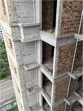 3.外脚手架立杆基础不实,局部立杆悬空。连墙件设置不足,钢丝绳设置与方案不符。