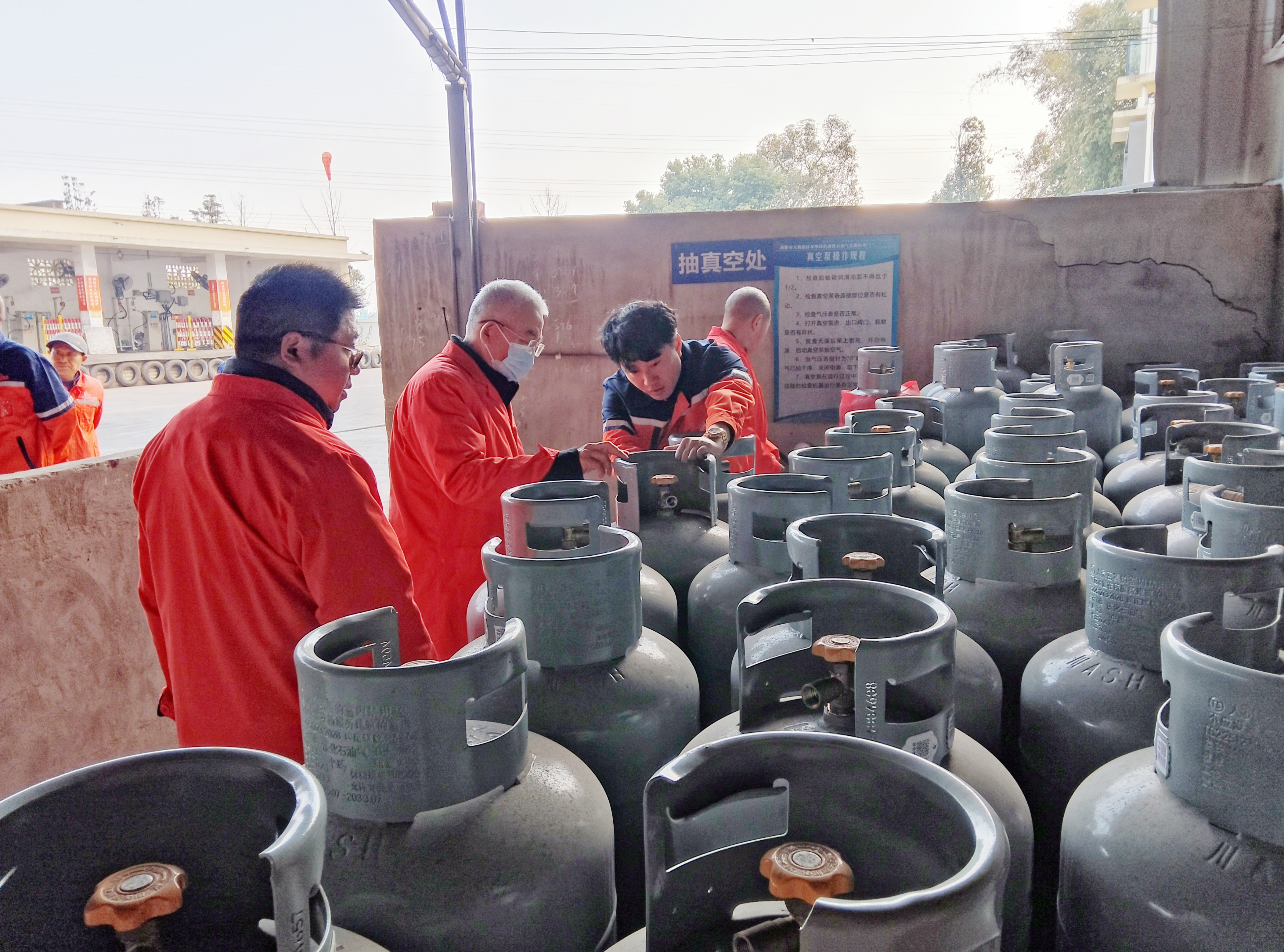 2月12日,省城镇燃气安全专项整治工作专班副召集人、住房城乡建设厅一级巡视员叶长春带队,在成都市检查指导城镇燃气安全管理工作。检查组一行直奔现场,先后前往天府新区双华绿色液化石油气充装站及正兴配送站,实地检查液化石油气场站建设及气瓶充装、储存、配送等环节的安全运营管理情况。