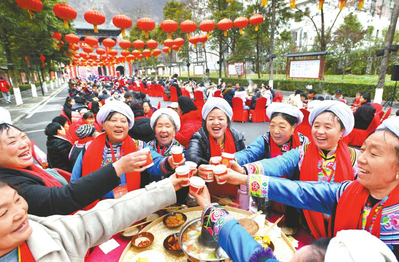 坝坝宴上,群众举杯庆祝。 四川日报全媒体记者 华小峰 摄