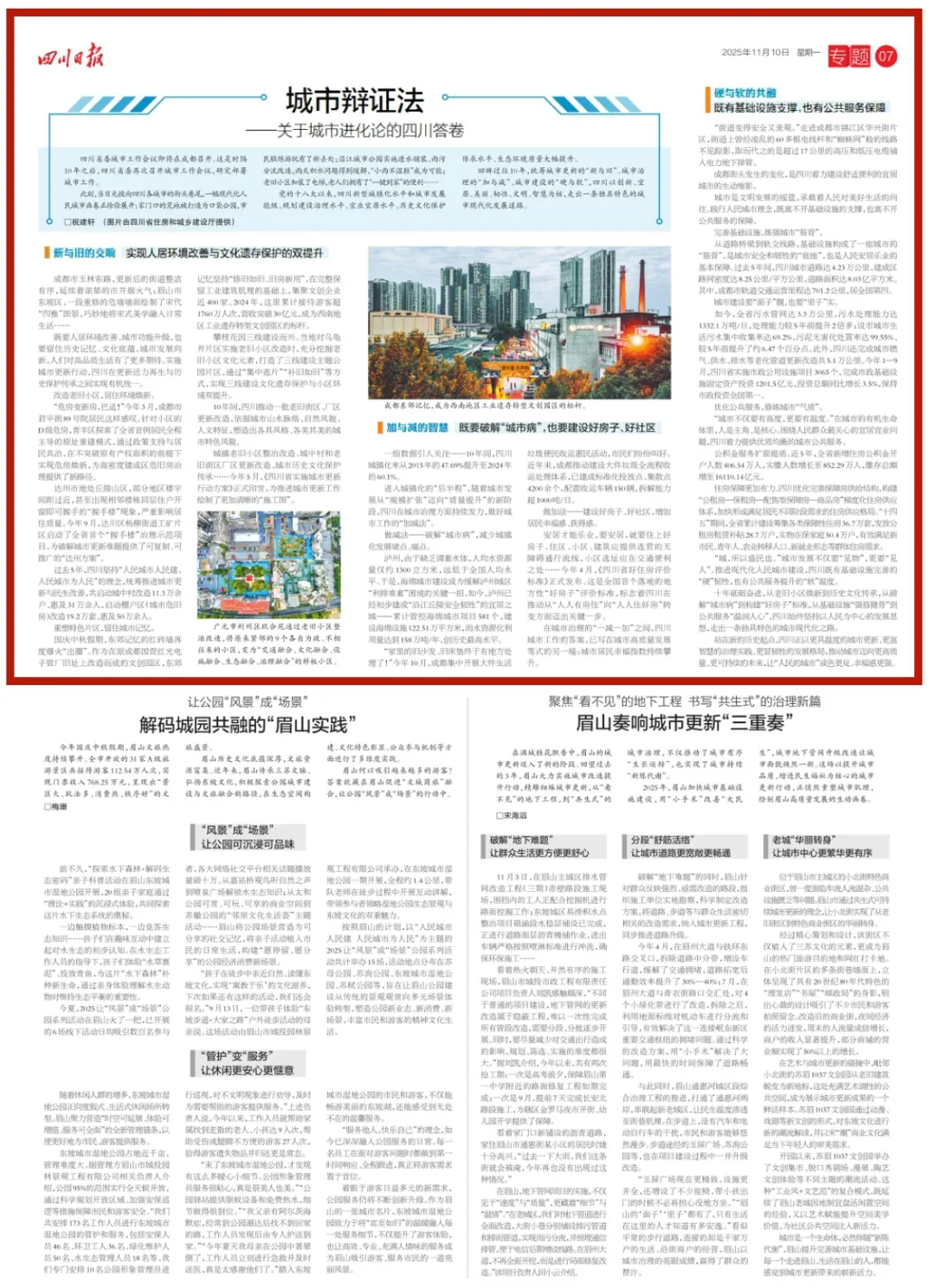 今日,四川日报以《城市辩证法——关于城市进化论的四川答卷》为主题,聚焦过往10年,四川以创新、宜居、美丽、韧性、文明、智慧为核,走出一条独具特色的城市现代化发展道路。