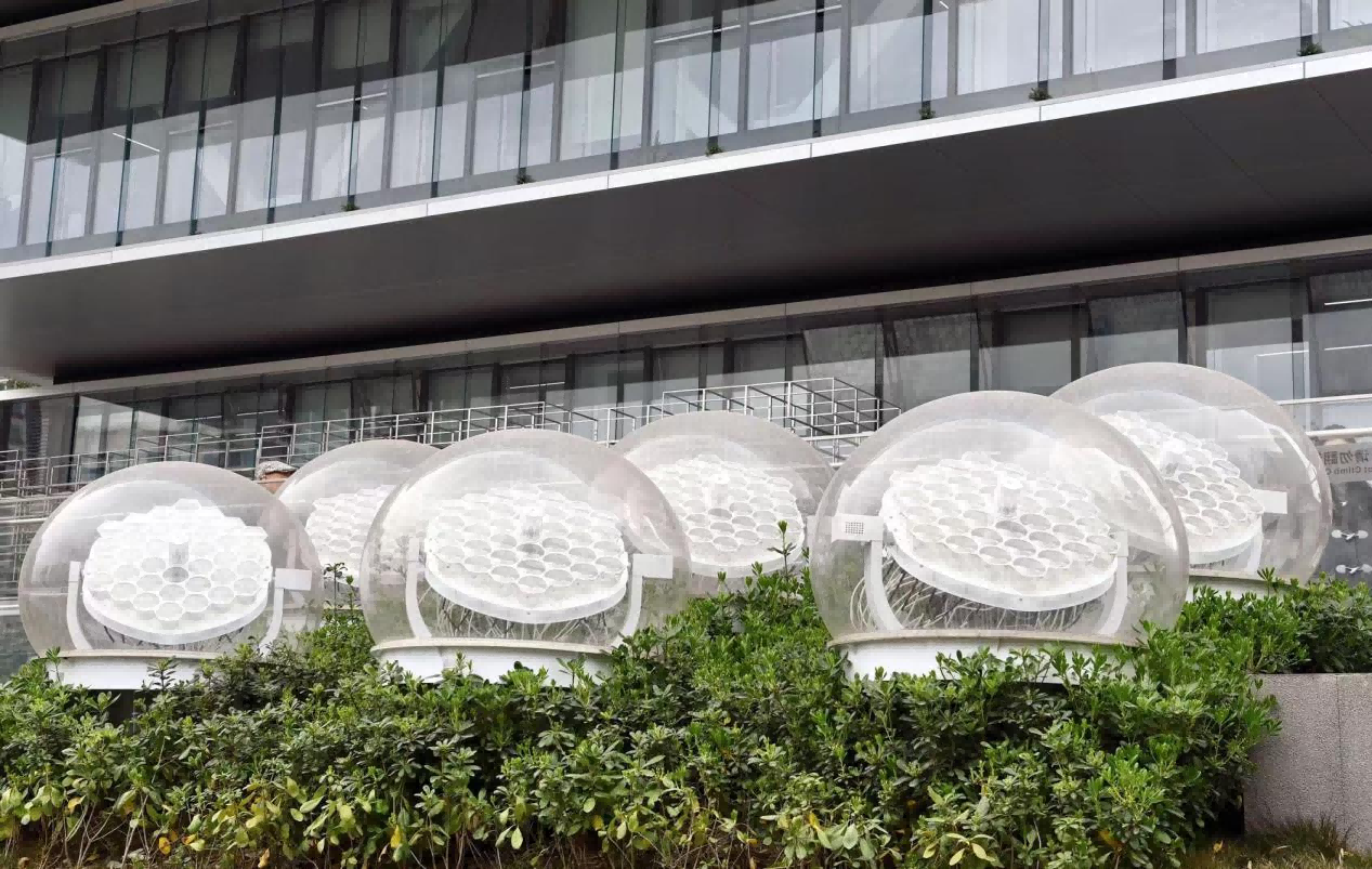 图中球状物为五冶科技中心大厦光导纤维采光追踪系统